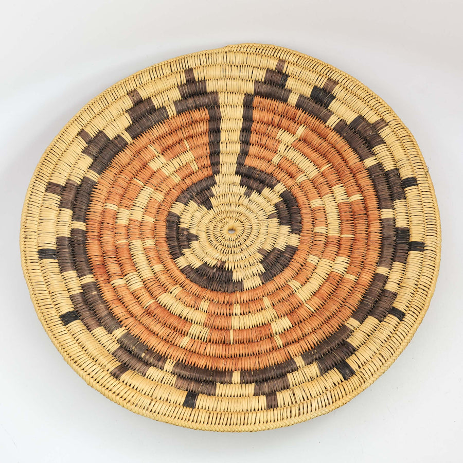 Navajo Storm Pattern Weaving with a Grey Storm Pattern Design on a Dark Brown Background.