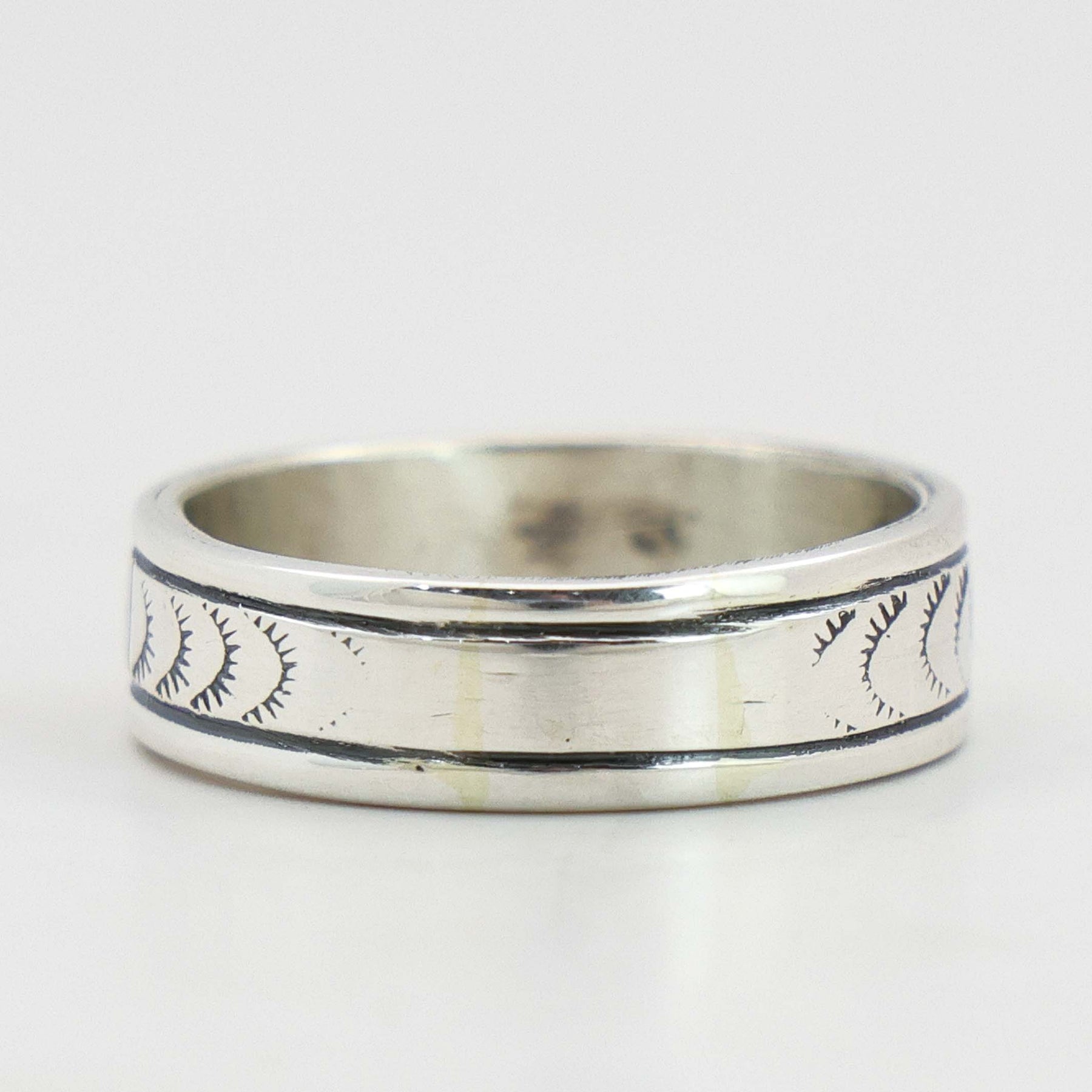Sterling Silver Ring with Overlaid and Hand-Stamped Designs.