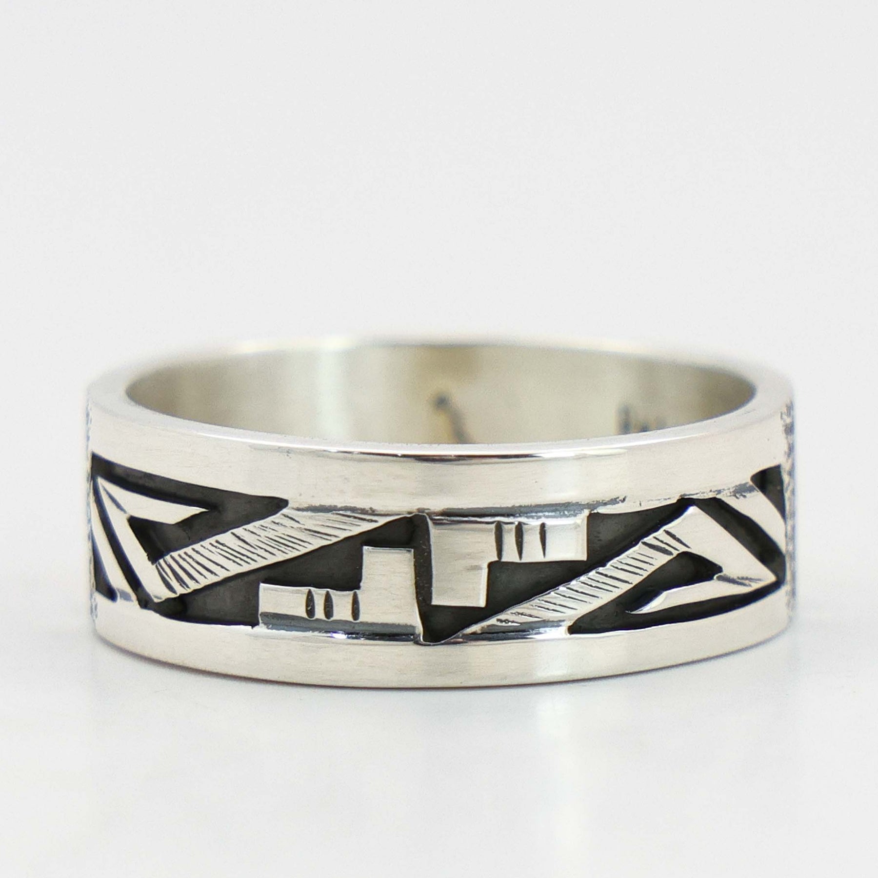 Sterling Silver Ring with Overlaid and Hand-Stamped Designs.