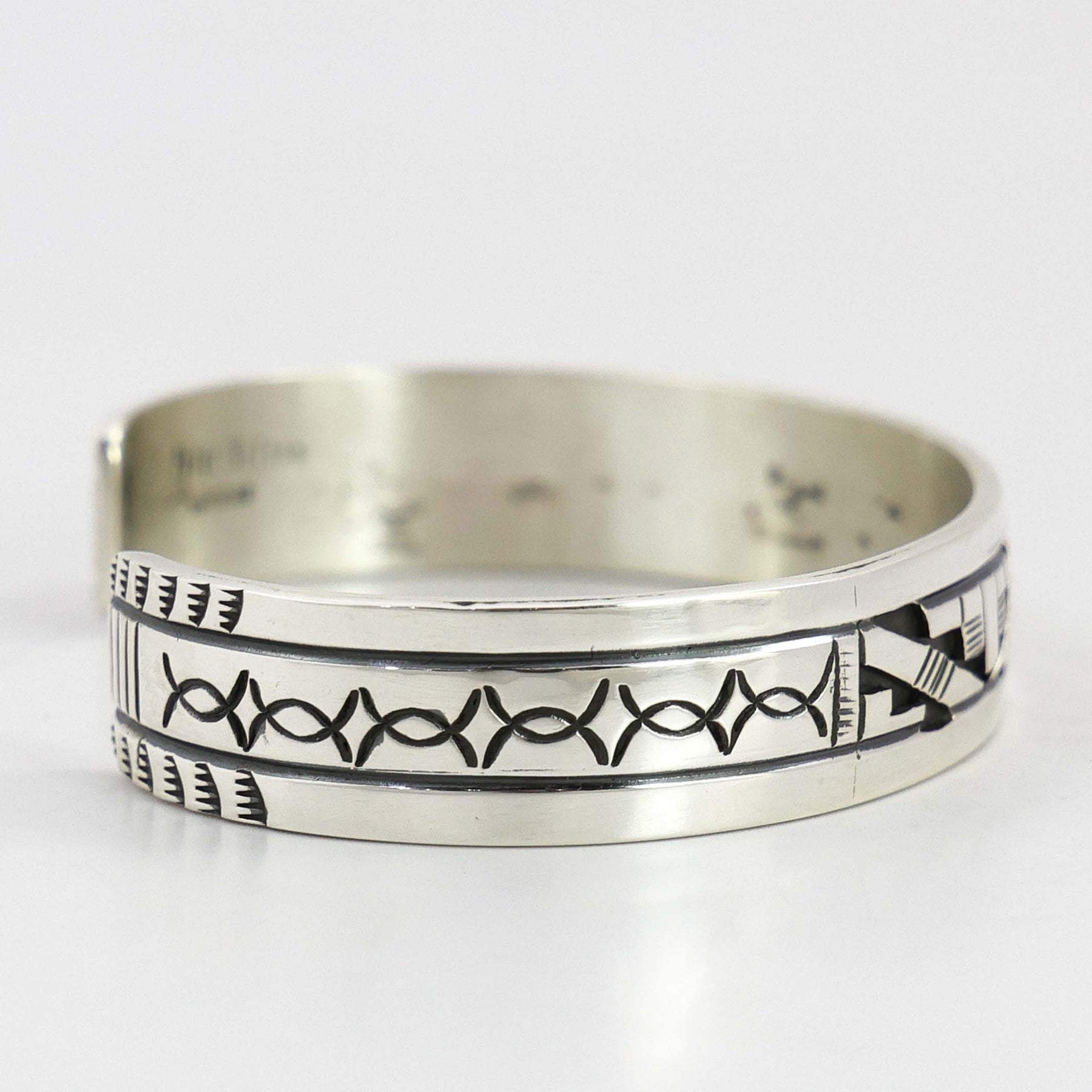 Sterling Silver Cuff Bracelet with Overlaid and Hand-Stamped Designs.