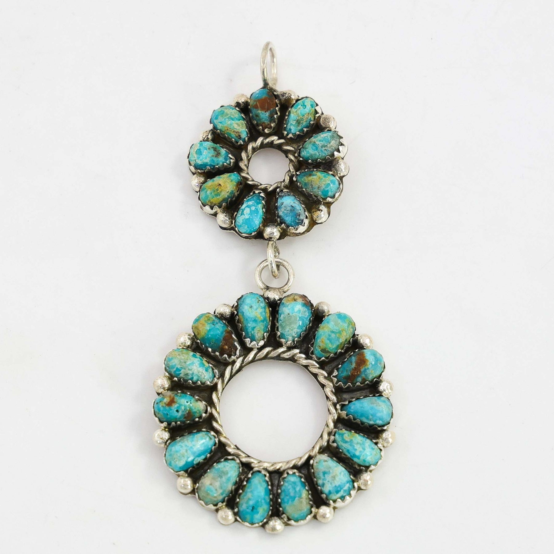 Sterling Silver Pendant with Two Circles set with Kingman Turquoise from Arizona.