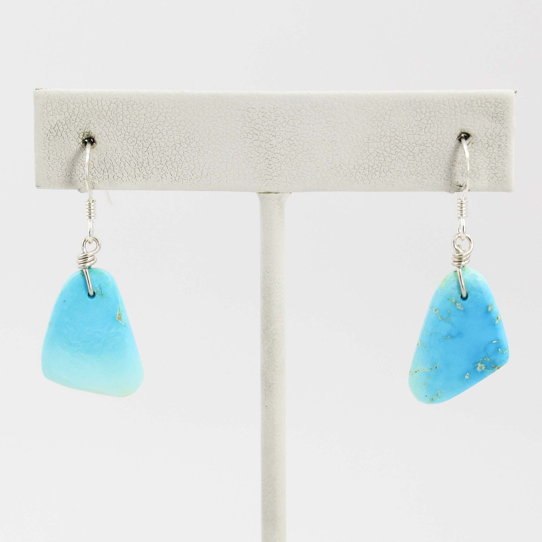 Sterling Silver French Hook Earrings with Hand-Cut Natural Sleeping Beauty Turquoise Slabs.