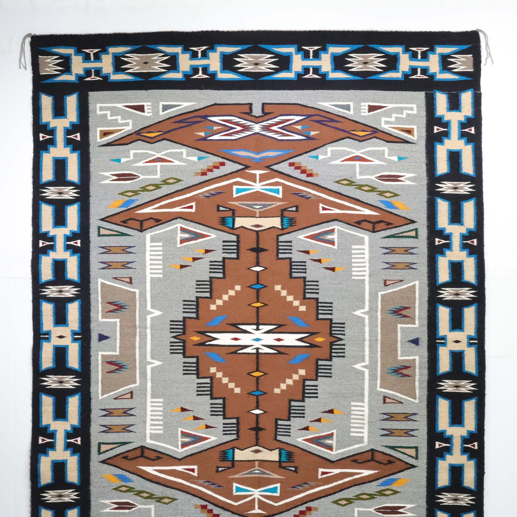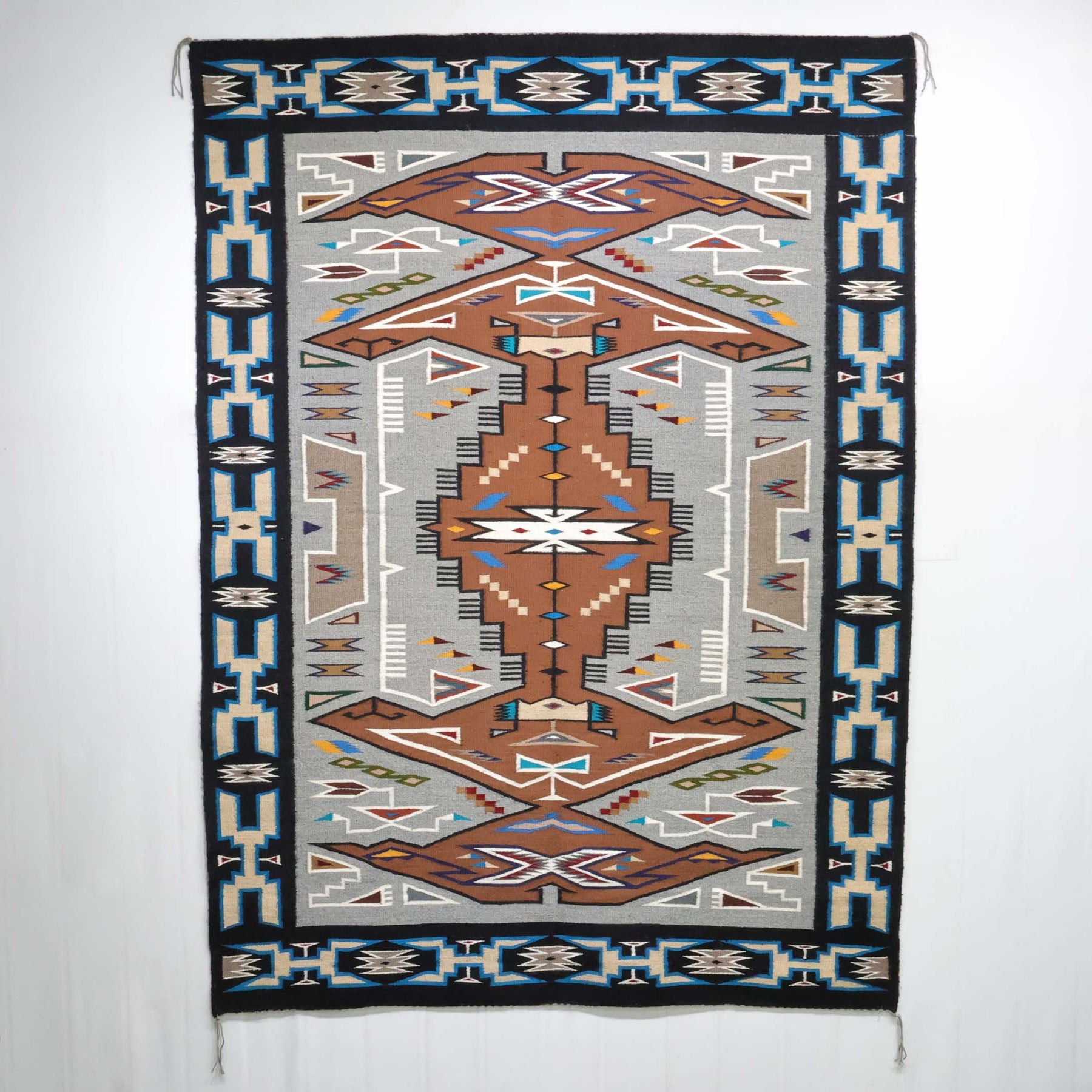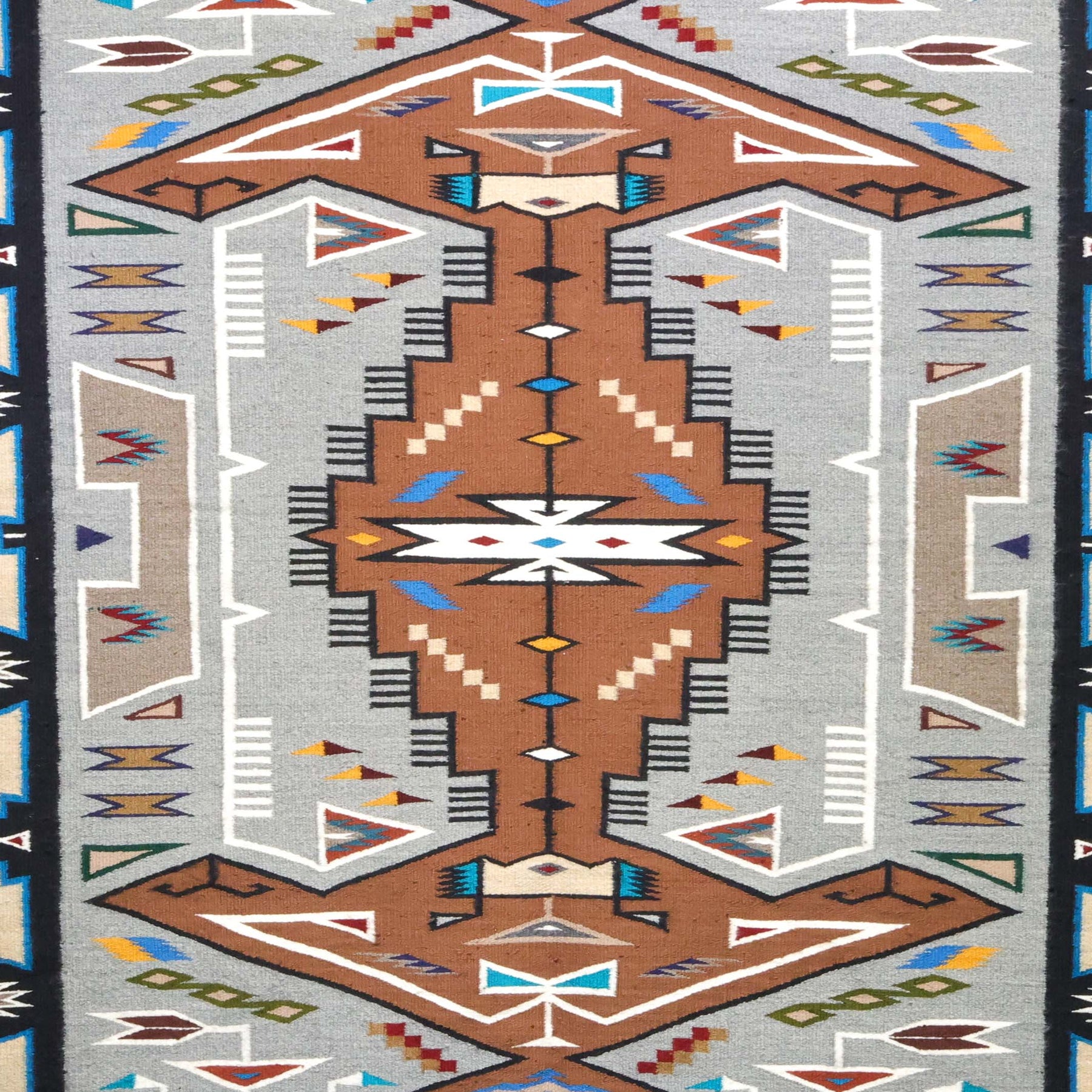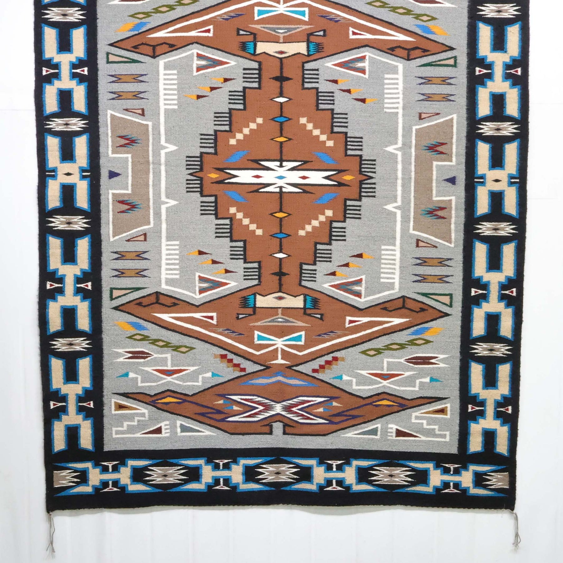 Handwoven Navajo Teec Nos Pos Weaving with an Intricate Design using Colorful Accents.