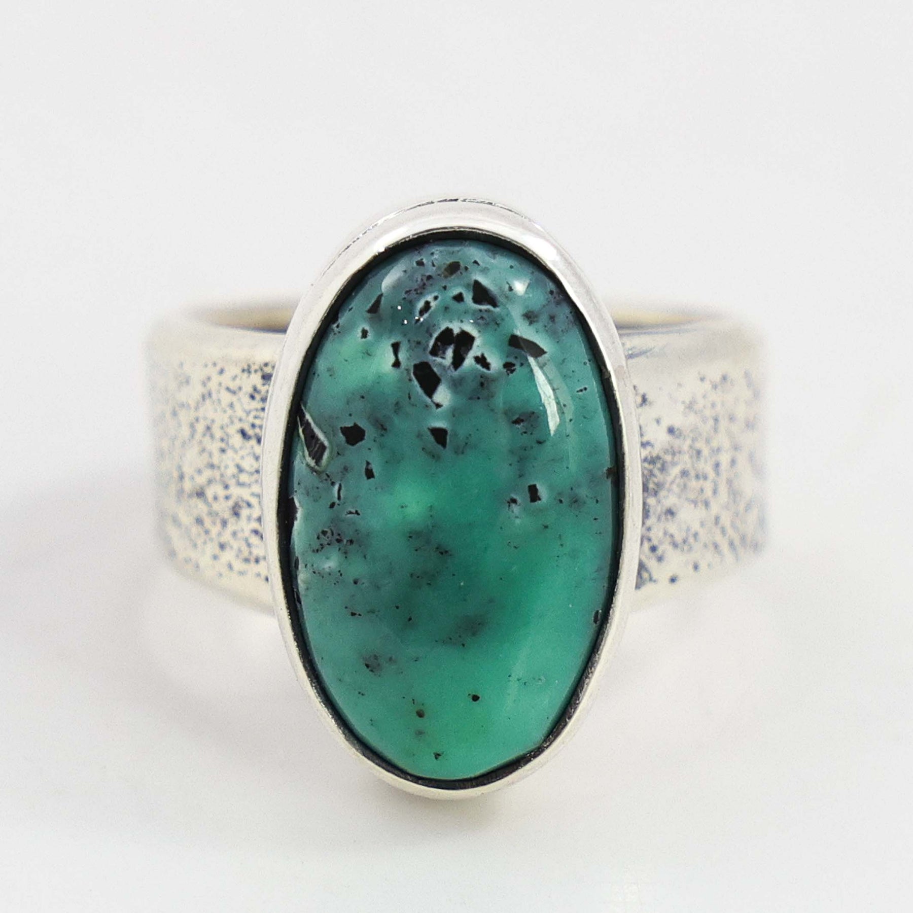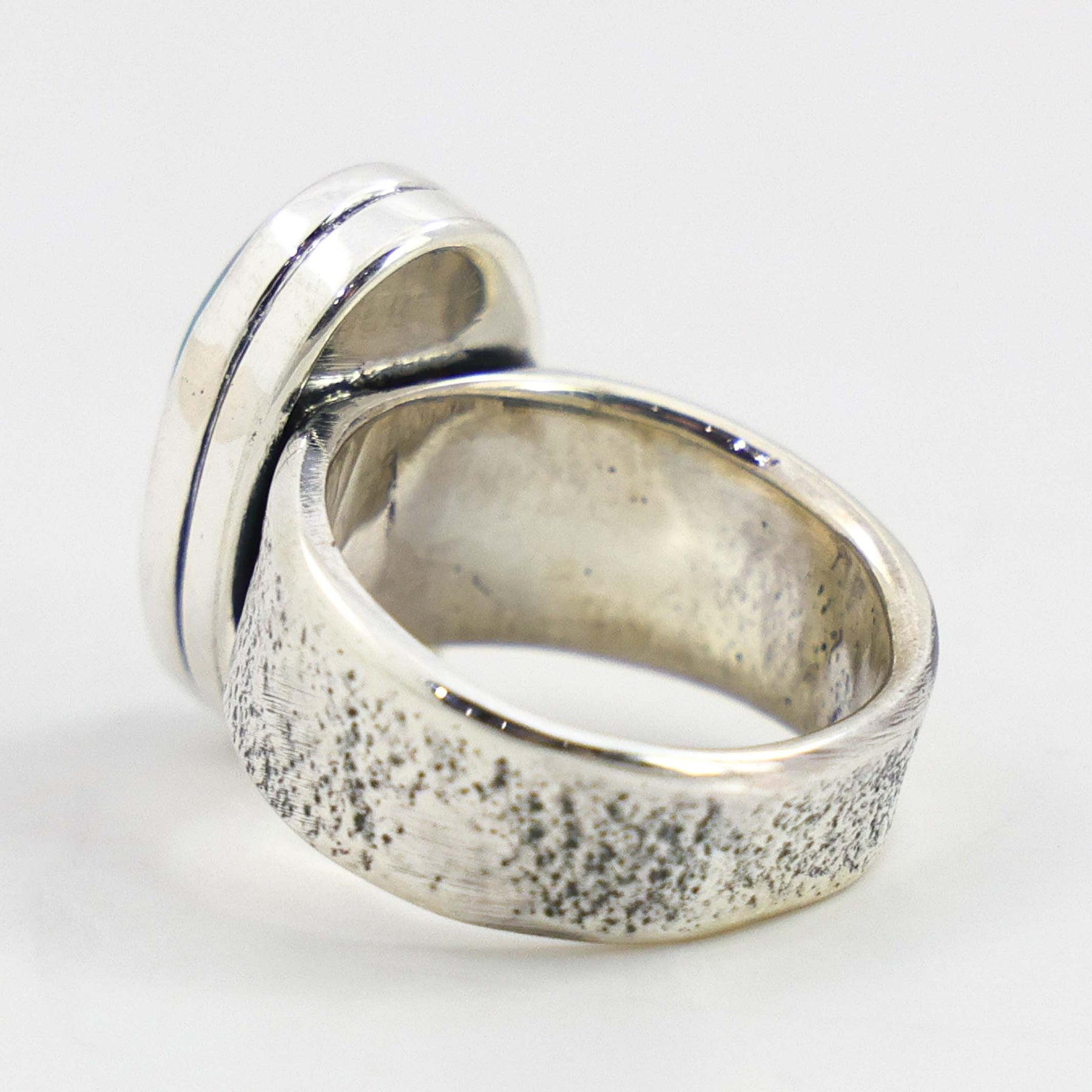 Sterling Silver Ring with a Tufa Cast Band and set with Natural Royal Peacock Turquoise.